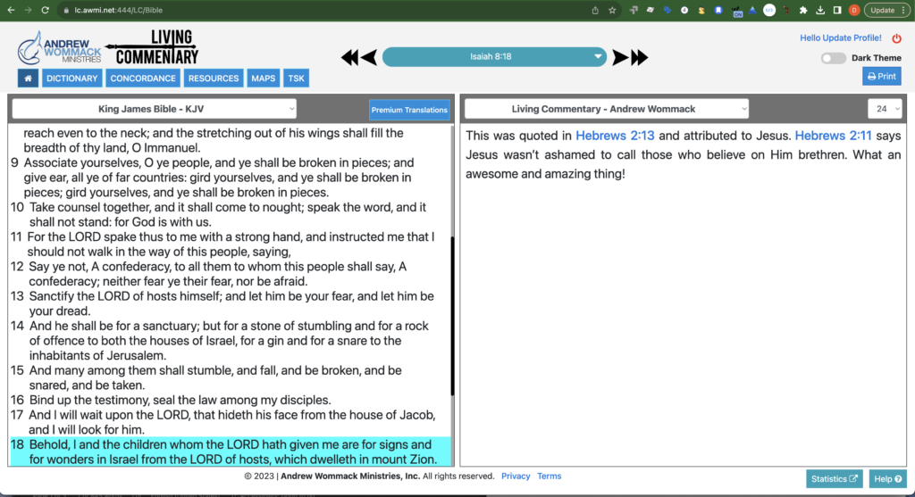 For more than five decades, Andrew Wommack has dedicated himself to the study of the Bible, and now his accumulated wisdom is available to you through the Living Commentary Digital Study Bible. True to its name, the Living CommentaryDigital Study Bible is continuously growing and developing with new insights from Andrew as he receives revelations from the Lord.